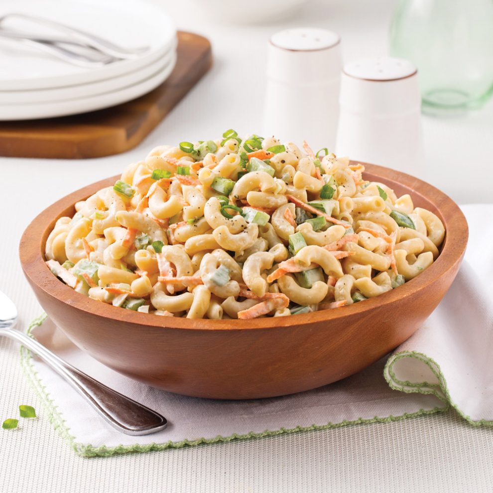 La Salade de Macaroni, c’est comme une fête dans un bol : des pâtes, des légumes, et une sauce qui font Clap, Clap !